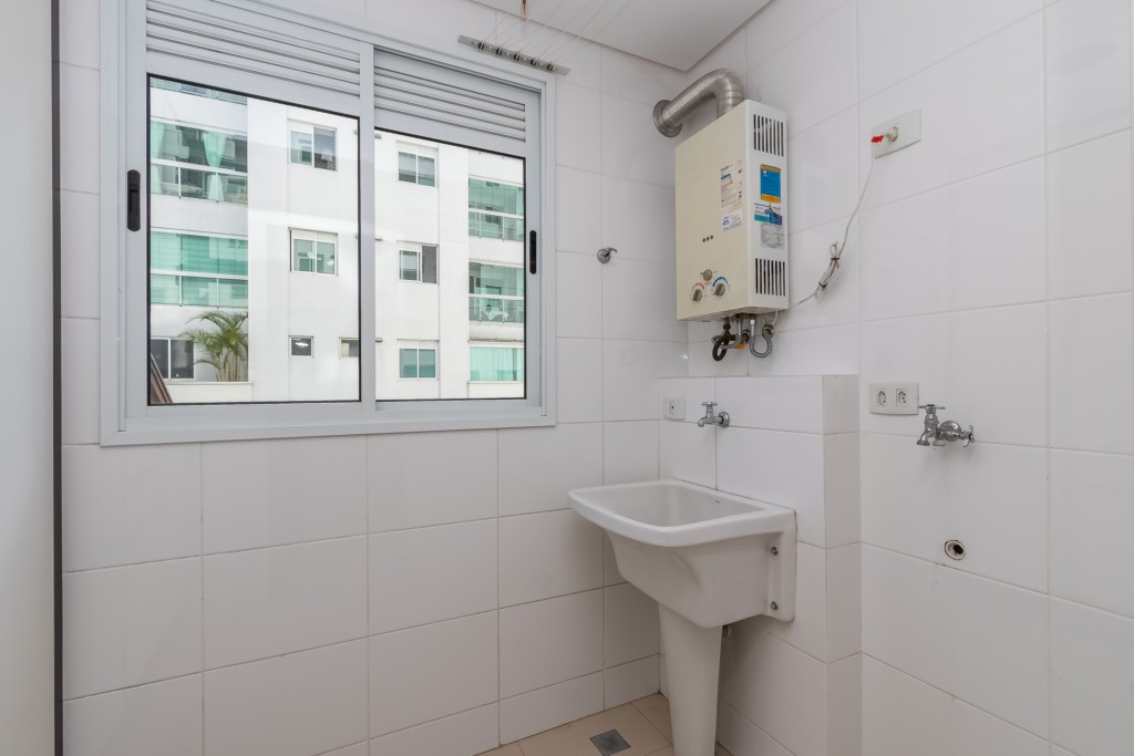 - Área de serviço com tanque, armários e aquecedor a gás;