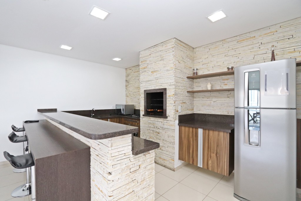 - Sacada gourmet com pia e churrasqueira a carvão;